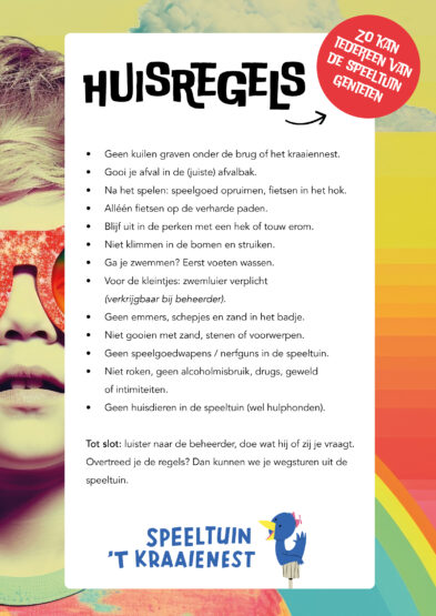 Om er voor te zorgen dat iedereen van de speeltuin kan genieten hebben we een aantal huisregels.